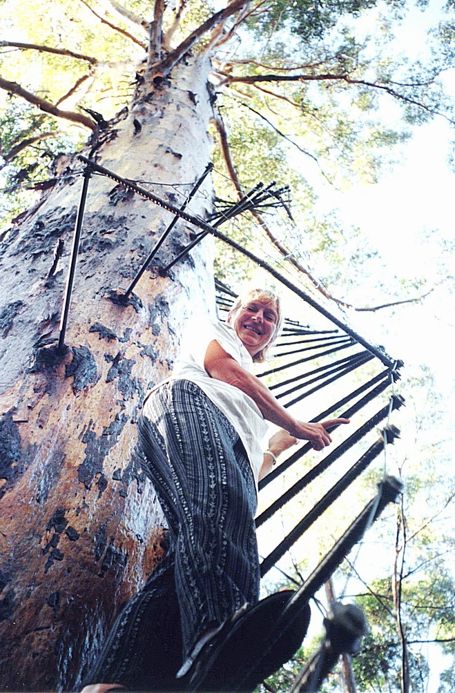 Rosie climbing the 60 metre Gloucester Tree (4 rungs)