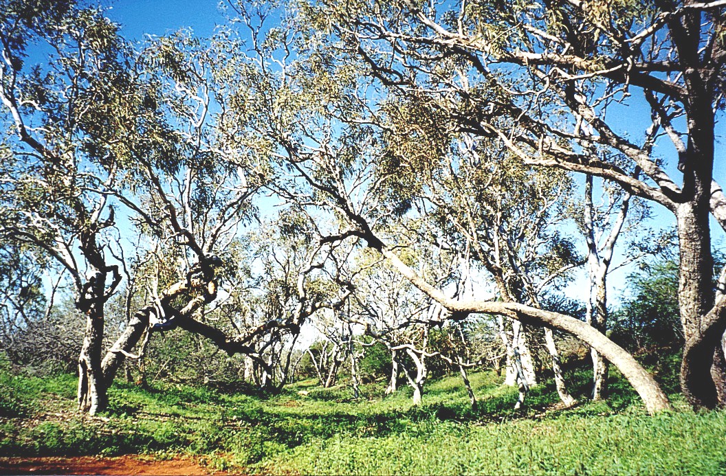 We stopped another time by a little cave opening just a very shallow cave going into the hillside and by it we could hear a lot of birdsong - we soon realised that Les was an absolute expert on birds and flowers, geology and most other things too. This was our morning coffee stop where we had cake and coffee. it was now about 10.15 and we were ready for it after our early start. Another stop was in a place called a billabong, where there was no water anymore but they were coolibah trees.