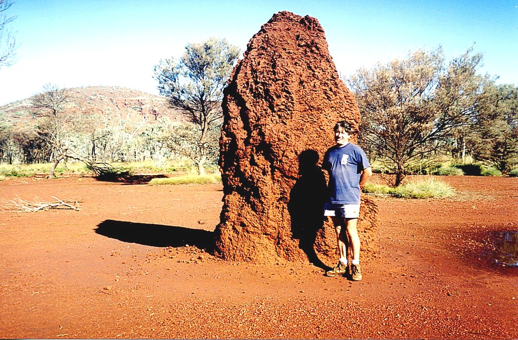 Adrian by the obligatory stop at the termite mound