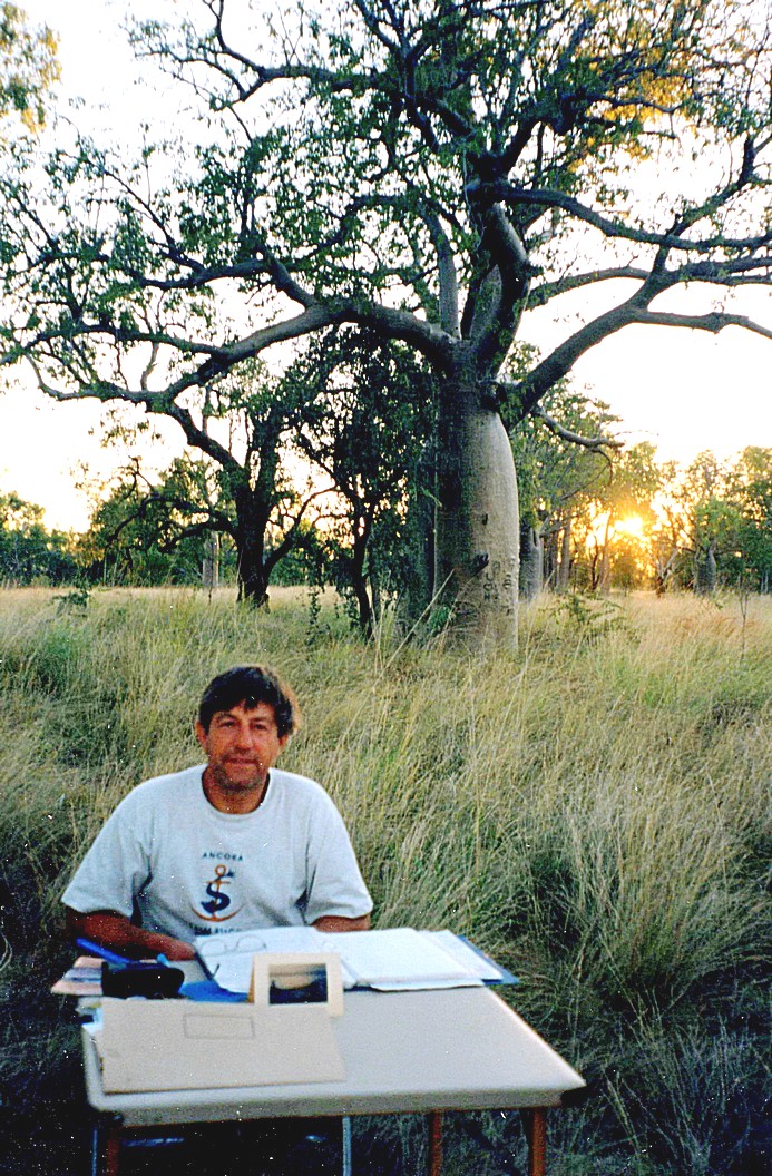 But the pleasure was short lived because as the sun went down behind the Boab trees out came the mossies and I got bitten very quickly. I also had a very painful rash or whatever under my arm since this morning. That made me feel pretty miserable, so we actually came in and cooked inside, the first time for many days. Simultaneously to these things happening two people nearby started up their generators, there were very few people camping here, but these two seemed to have had generators, which were very noisy and disturbed the peace of evening. After the pork chops we had for supper, we looked through all the post that we'd had. Later I labelled the photos in the latest album, and listened to the new CD's that we'd had sent from home