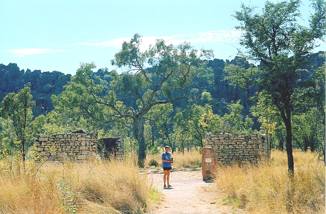 Again, we shall treasure this place. We walked back and had our breakfast sitting outside, in the now pretty empty campsite. A lot of people had already left, so we had the view more or less to ourselves. We went to fill up with water as it tasted excellent, the previous couple days it hadn't tasted too good. However as Adrian went do it, the people who were parked beside the water tap, took ages going, sitting with their engine running and when they finally left another vehicle nipped in before Adrian could get there. We then found there was a another tap so it wasn't really a problem. We left and went back to the ‘main road’ and headed for Tunnel Creek. We stopped at the ruins of Lillimooloora Police Station were Pidgeon had shot policeman Richardson.