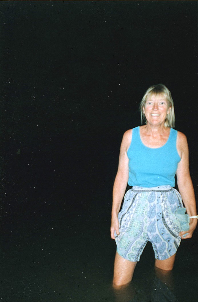 We watched them until they landed and then returned to the caravan site where we filled up with water - it was by then 4.30. We sat outside, it was pleasantly warm, Adrian with a beer, and read the newspaper and a magazine and then went to chat to another couple in a coaster, she had spoken to us this morning, a couple perhaps a bit older than us, although she said she was born in 1942. We thought just a quiet little couple, but they had travelled a great deal around Australia and loved travelling on the unsurfaced roads. They were the ones who were keen to go on the Gibb River Road [I am sure it was this ‘quiet little couple who had travelled on Route 1 between Birdham, Northern Territory and Normanton, Queensland. Although it was Route 1, the main road around the outside of Australia, this section of the road in 1998 was not much more than a 4 -wheel drive track – and much of it is still in 2023. It is roughly 700 miles and she casually said ‘ it was OK , we just had to go slowly, about 10mph’ – that’s 70 hours!] After returning from that we started preparing our meal and had a phone call from Tom and had a nice chat to him. We then cooked the steak and opened a bottle of bubbly thinking this was our halfway mark between leaving England and getting home again. We sat outside to eat and as it was cloudy it was still warm, and after the meal we washed up and had a walk around the site. A coach load of young people in little tents arrived rather filling up the place. We then decided to come in, a lot of people were still sitting out as it was a mild evening. By now, we could see a few stars.