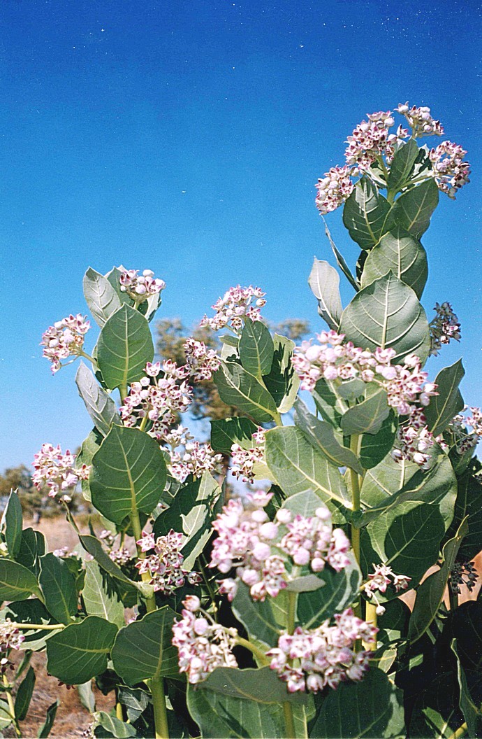 We were enjoying listening to our last tape, tape10 of the Karijini. We stopped to view a plant that we'd seen before, a rather cabbagy looking plant which I thought must be a hakea. It was tall, up to six foot, with large cabbagy leaves but the flowers at the end of the clusters were mauve, exquisite looking flowers and didn't really belong on this funny cabbagy plant. It looked nice against the clear blue sky.