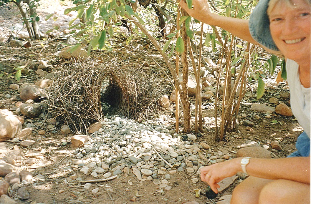 Adrian & Rosie by a Bowerbird nest in Echidna Carvern