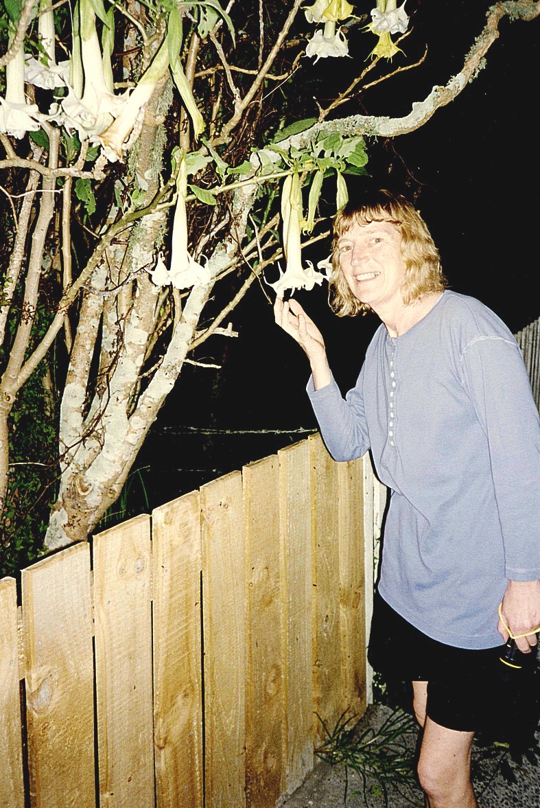 Again awake early. We wrote a few postcards before saying goodbye to Betty at 7.30 – she was going into Auckland to work voluntarily in the Magistrates Court. She had just time to show us round the garden first – it was in the "clearing up for autumn" stage. There were lots of orchid plants and many plants which we would have as house plants. In the front was a Macadamia tree.
