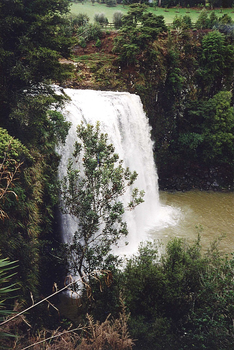The sky was beginning to look a bit erratic and at one point later we had a downpour for about one minute. By the state of the road in many places, we could imagine what it was like the couple of days before we arrived, as there was much evidence of landslides, and sand / soil covered the road in many places. Just before Whangarei we came to a fairly large supermarket which was open (on a Sunday) so we were able to buy many of the things which we needed, including disposable plates and bowls at a very reasonable prices and 4 large glasses for £1. We drove through Whangarei – we were now late for lunch and stopped soon afterwards at Whangarei Falls and ate our lunch there before viewing the falls.