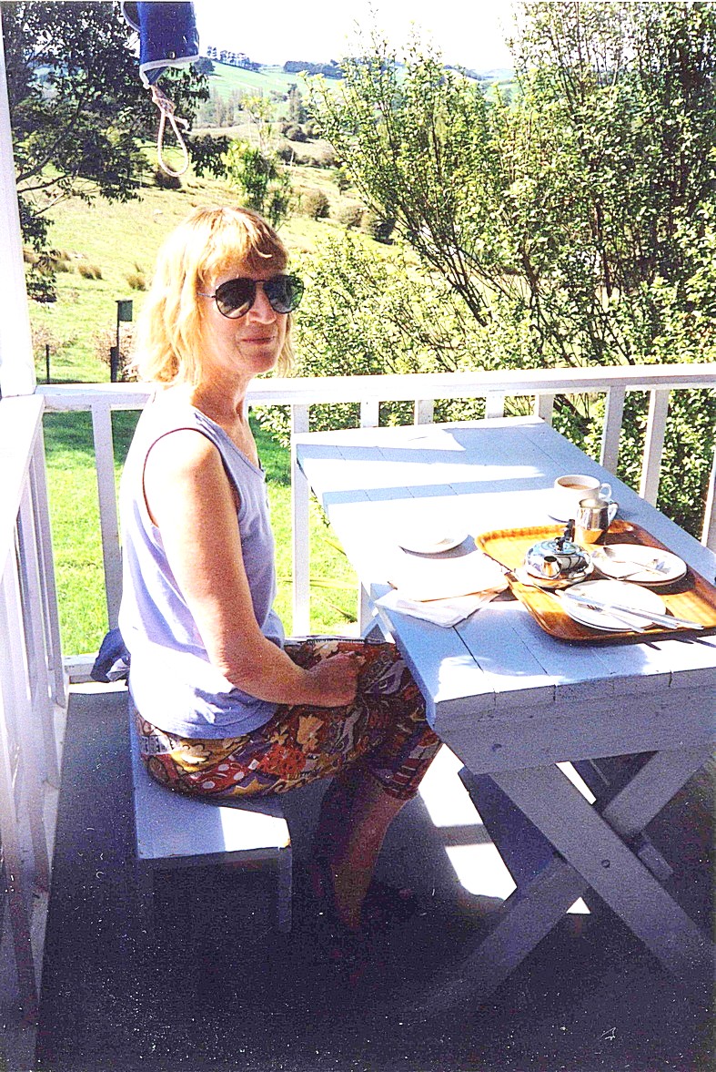We ate an enjoyable lunch (pie and cake) in the tea shop opposite, sitting overlooking pretty country. There had been a heavy shower while we were in the museum. We joined Highway 1 southwards, only for a few kilometres, retracing our outward journey. Through Wellsford and Warkworth (where we did a small shop) then down towards Auckland. We had hit the Auckland rush hour and it was very busy. We intended visiting Jeff's parents (he works with Adrian). After some difficulties we located the right area and then Adrian telephoned them. We soon found their house and then spent the evening with them. They, like their children, were widely travelled. After a short trip out by car, Peter cooked us an excellent meal, which we enjoyed with Cloudy Bay wine. After much chatting we were ready to retire to our campervan parked outside for the night.