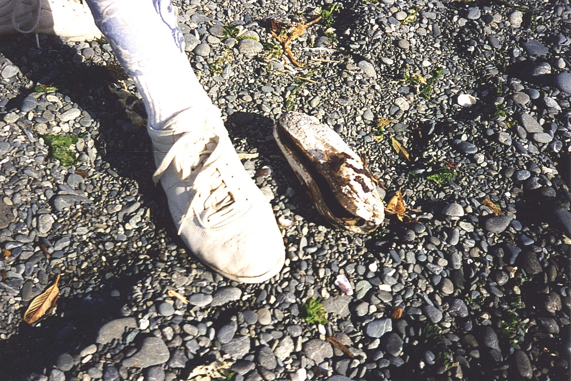 We eventually tore ourselves away from this wild haven and started the drive into Wellington. The habitation around Wellington spread a long way and the roads were busier than we expected. The whole setting is very attractive. On arrival at Wellington we drove to the ferry point to pay for our tickets. We then drove round and round Wellington hoping to park so that we could use the cable car. This proved impossible – all roadside parking spaces were taken or were residential only and our vehicle was too high for a covered car park. Instead we drove up Mount Victoria, driving up past many houses perched on the steep sides, with garages built out on stilts. From the top we could look down on to Wellington and the surrounding bay – quite a magnificent sight. I cooked scrambled egg for lunch and while eating it we looked out and saw it sunny across the bay – it had become cloudy and chilly in Wellington. This decided us on driving around the bay, which was several miles. At first we were on busy roads and through industrial areas, but then we came to an uncrowded area around a town surprisingly called Eastbourne. We stopped and looked across to Wellington and saw a ship with billowed sail, sailing out across the bay. We stopped again by the beach. We could see evidence of previous fires on the forested slopes behind. At the end of the road, the track went on for walkers/cyclists only, but the shortest walk was an hour and we didn't have that. We had a short walk on the beach in the pleasant sunshine, looking across the magnificent bay. On the beach we had seen fennel growing, also alyssum and some small bright purple daisies. There were also enormous mussels – about the size of my foot.