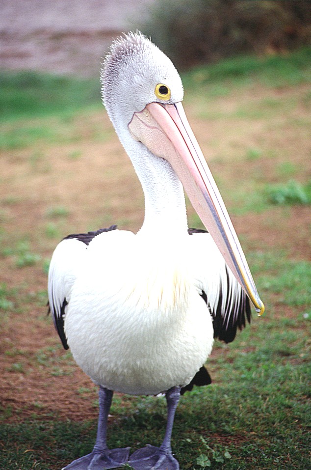 After a good night, we awoke to hear noisy galahs and someone leaving early and found the lady's statement about the rain not to be totally true. The morning had a mixed looking sky and we saw a rainbow. We were almost directly opposite the place where pelicans were fed at 8.45 and I had intended to watch this. But before then the sky became really black and it rained rather heavily, so we watched through binoculars, I was sitting still in my jarmies - we'd had breakfast, 8.45 passed, and people were out there waiting and by about nine o'clock it had just about stopped raining so we quickly donned some clothes and walked across the road, just in time to see the pelicans being fed. This was very enjoyable and there was a nice woman feeding them fish and explaining lots of facts about them and that was really quite fun. She said it never stays raining for long in Kalbarri! She did say that the river gorges we were hoping to go to that day might be closed if the weather was bad as it was a 22 kilometre plus on sand road to get there.