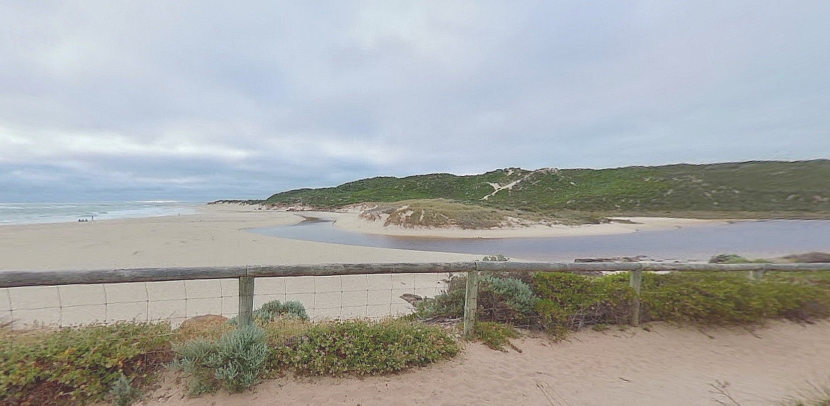 The Margaret River mouth with the sand split right across it (streetview 2018)