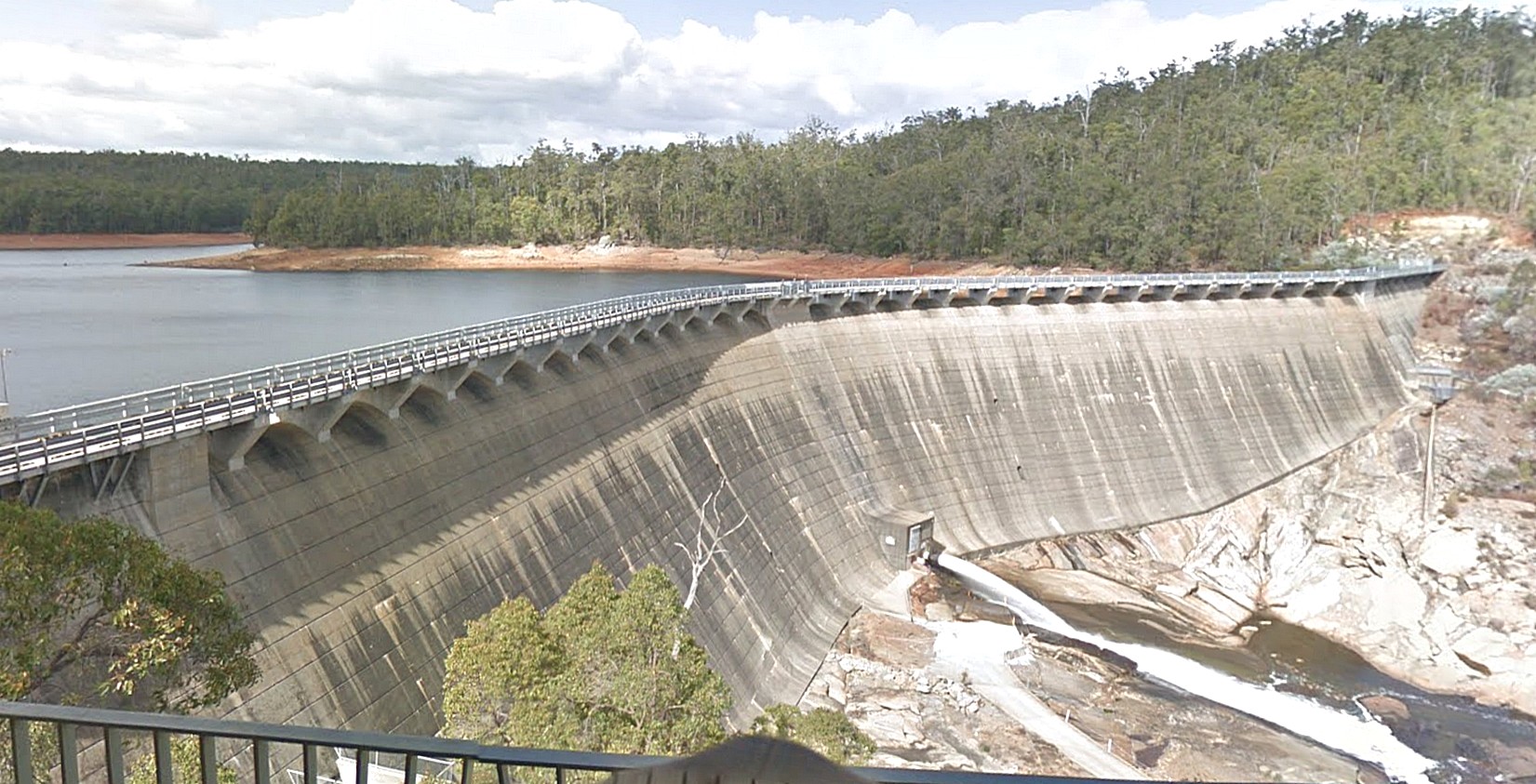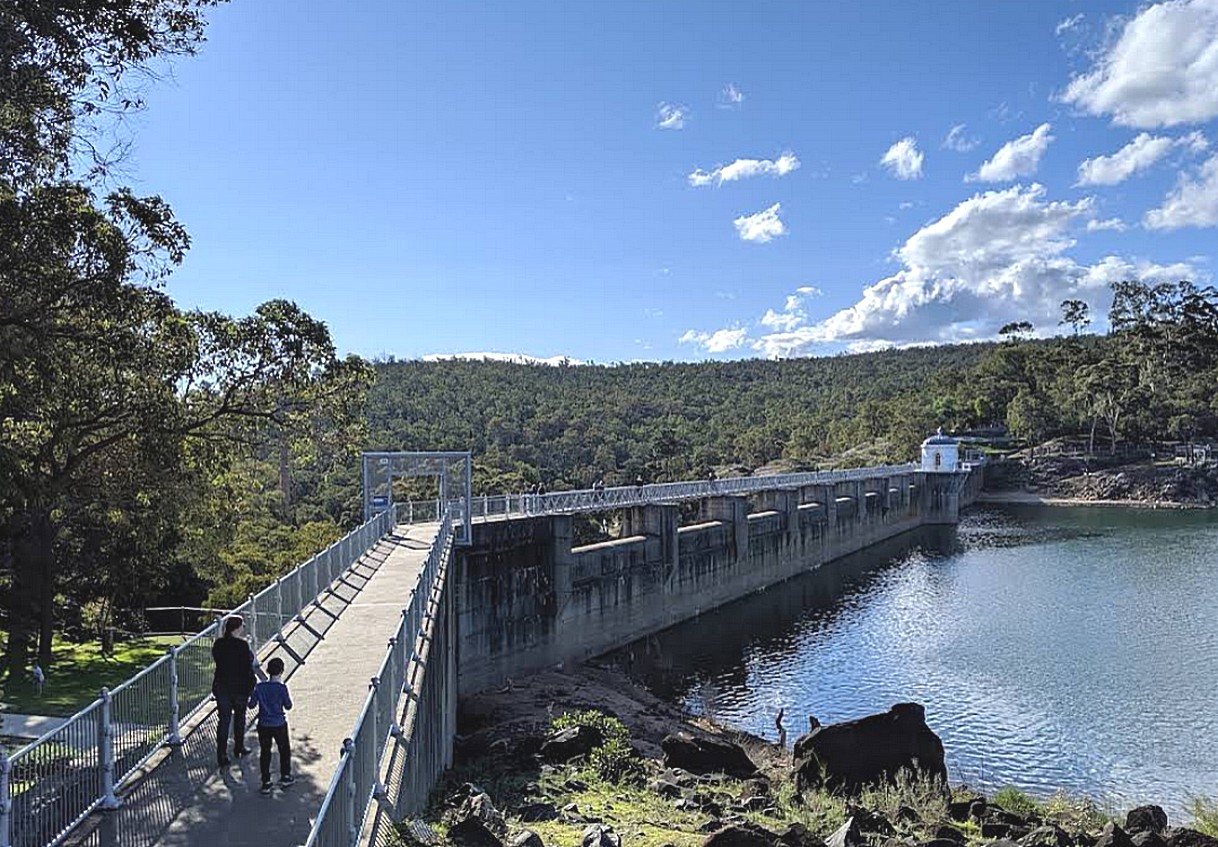 We walked across Mundaring Wier/dam (streetview 2019)