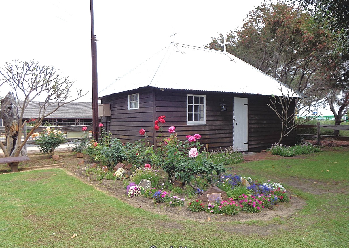 It was a chilly night and a grey morning, and we stayed in bed reading the letters again and the Cleveland family history magazine and it was 9.30 by the time we left. It was very autumnal as we drove up out of the forest, with the sun trying to shine through the mist and the trees, but as we headed out of the forest, it was actually into clear blue sky. This was just in time to see the wonderful views as we emerged from the hills, seeing all the forested slopes, lots of pine trees, green grass, and right down over the sea just north of Bunbury and to Australind where we were heading and along the Leschenault inlet. We reached Australind a very lovely location with an interesting history. Someone had tried to start this in the 1840s as an Australia and India exchange port but it didn't work as well as hoped and it failed and now the town is just growing as a little tourist town. There was a tiny church there, an old wooden church, it is meant to be the smallest in Australia and we looked at a monument to the early settlers.