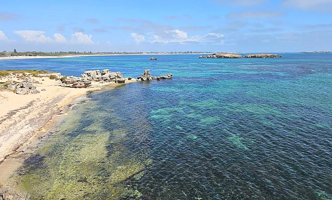 There was clear blue sky but a chilly wind. We we're hoping to go to Rottnest Island today so packed up and left at 8.50. We drove straight to the ferry and arrived in plenty of time to get tickets and get organised of what we had to take with us. We had a smooth crossing, it said half an hour but it was more like three quarters and left a bit late and then arrived at this idyllic island of white sand. There was a little bit of a small settlement when you arrived, but apart from that simply nothing on the island. We went first and hired our bikes $18 each for the day, with helmets and a lock and then went to get coffee which wasn't a great success. We had to wait a long time as there were a lot of people at the cafe we got it from and my espresso coffee was a thimble full, so I wasn't greatly enamoured. We then located the bakery to get a filled roll each for the day and a cake and we saw a quokka there.