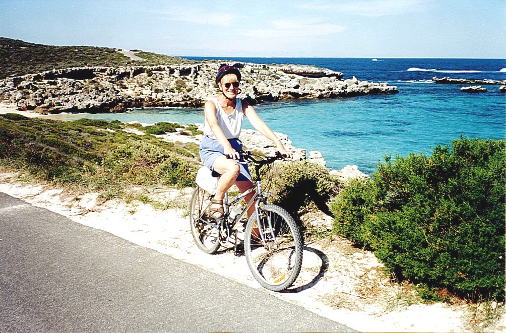 Rosie cycling on Rottnest Island