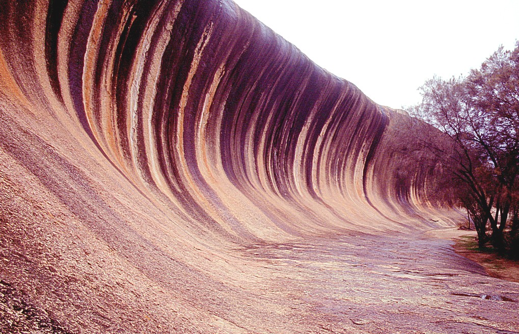 From high up on here, we had a good viewpoint all around and we decided as it was 10.30ish to have our coffee stop. There was an interesting programme on the radio, an interview rather like desert island disc's. We'd heard one previously with Phoebe Fraser and this was with John Pilger and very interesting to listen to. He said he was a gypsy at heart and loved travelling, so a bit of a kindred feeling there and the very memorable song that he chose was 'the band played waltzing Matilda'. This was one that I knew but had never listened to it right the way through and was quite long and quite heart rending to listen to. We had coffee, tea and iced bun listening to that and to our CD of Edith Piaff, quite a memorable little stop. We stopped in Kondinin a little one eyed town for some expensive diesel and soon we're at Hyden, another town with nothing really there. We looked for a tourist information board, in fact we looked for anything of interest, but didn't find it. We found our way out to Wave Rock and parked in the first car park we came to, called the Breakers Car Park and there was a sign saying ‘the Breakers 300 metre - easy walk’. So we set off and we were immediately climbing up a steep rock, very slippery and I had a a nasty experience of slipping all the way down it and crashing into the trees at the bottom. We then walked around, and I said “let's go this way” and we went up to a dam, where they collect water within a wall around the top and suddenly we'd seen and passed Wave Rock. Adrian didn't believe that that's all it was, it was a very short distance and we weren't that impressed at all. We walked to another little carpark and we looked at some information boards there.