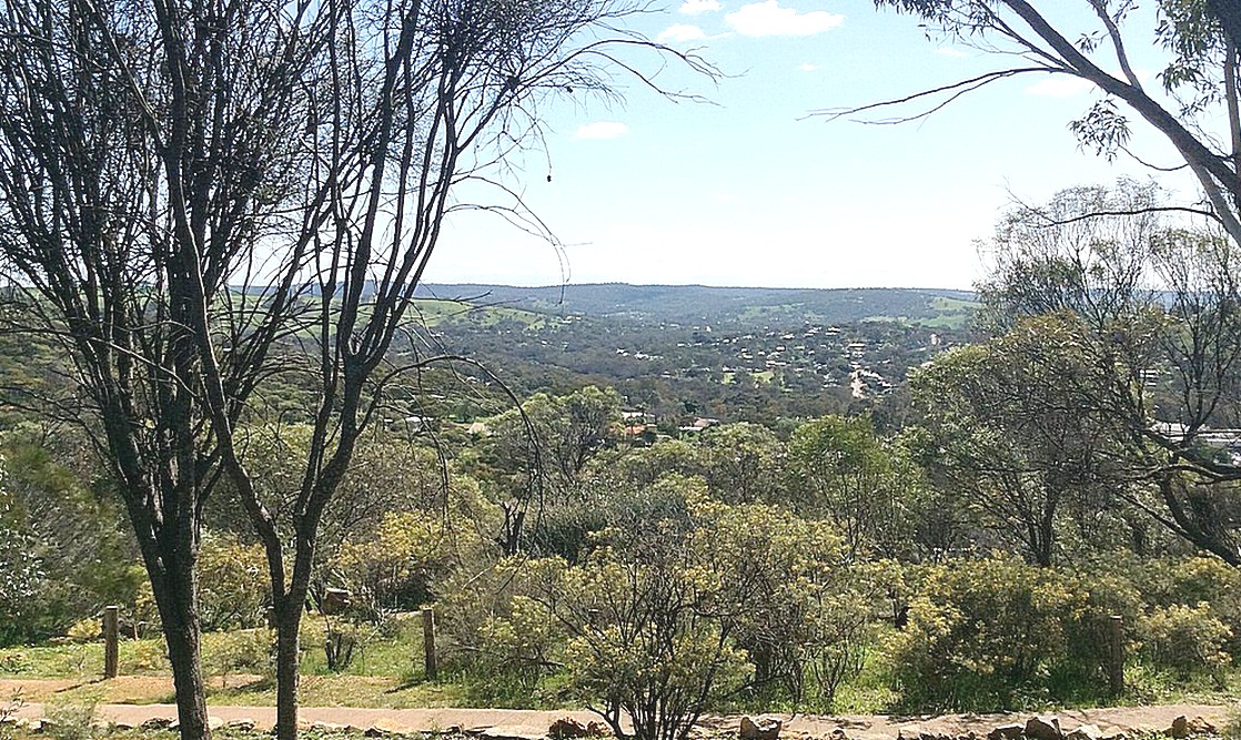 We passed through Dowerin in 14 kilometres and at Goomalling, we stopped and went into a small Foodland where we were served by a pleasant young chap and girl. Adrian had left the money out in the van so had to go and get it to pay and we bought this week's English Express. We drove on to Toodyay, ta-ra-ra, and drove through the main street and a couple of kilometres out to a lookout over the town, at a place which was a picnic site. For us, it was a tea and coffee stop and after we had a short walk to a little granite outcrop - I was trying out my injured leg. There were two noticeable things, one that the walk was shown as a circular walk on a little plan and it certainly wasn't, it just went to the outcrop and back and the other thing was the large number of large purple ants which gave me the heebie-jeebies.