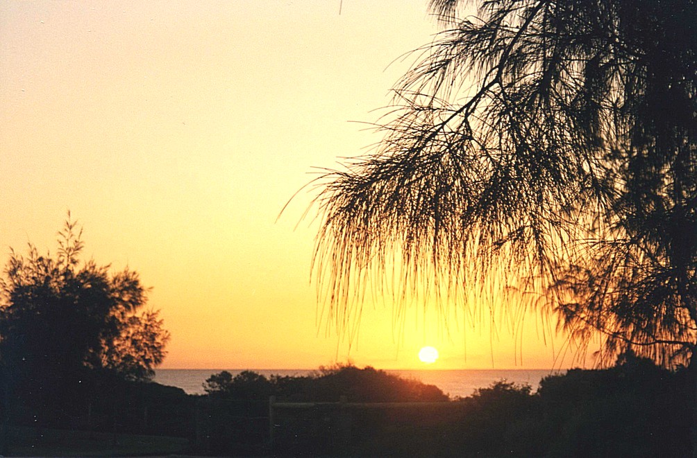 We awoke to a clear blue sky, but quite a chill feel to the air and left about 9 o'clock. We were very close to Freemantle and we soon located the swimming pool, which was open, and there was a 50 metre outdoor pool. The so called indoor pool was just like in a large greenhouse and there was also a spa pool. We had a jolly good swim, it seemed to be running and jumping along in the water that people were doing. The outdoor pool was actually just as pleasant as the indoor pool and we left there and drove down to the Swan River to have coffee. We then headed for the Mormon Centre and spent the next couple of hours or so in there doing research into the Lawsons in the Marquesas. We had to wait a while to get in, people were coming in with queries and there was only one person at the desk at the time. We had problems getting the computer programme to run properly, but we did find out some details and printed out quite a few bits and pieces and by the time we came out of there it was 1.30. We decided to head for town and managed to find somewhere to park at a dollar an hour, so we had two hours of that and we stopped at almost the first place we saw and had nice fresh fish and chips which were good but a little bit cold. We then walked around Fremantle and the shops, bought some CDs (John Denver), went into a bookshop, bought Lonely planet of the Northern territory, bought one or two bits and pieces and suddenly our two hours was up. We returned to the van, we had bought a map trying to decide what to do and we headed now for Coogee Beach CaravanResort as it seemed to be the same price with electricity as last nights site - (we needed electricity as the battery was failing and we were not travelling any distance to charge it). This one was just slightly further out and although the basic site wasn't much better, very much a static site, it was right on the beach which we walked out to and saw a starfish and watched the sun going down beautifully again. We had pancakes for supper and then listened to our new CD's.