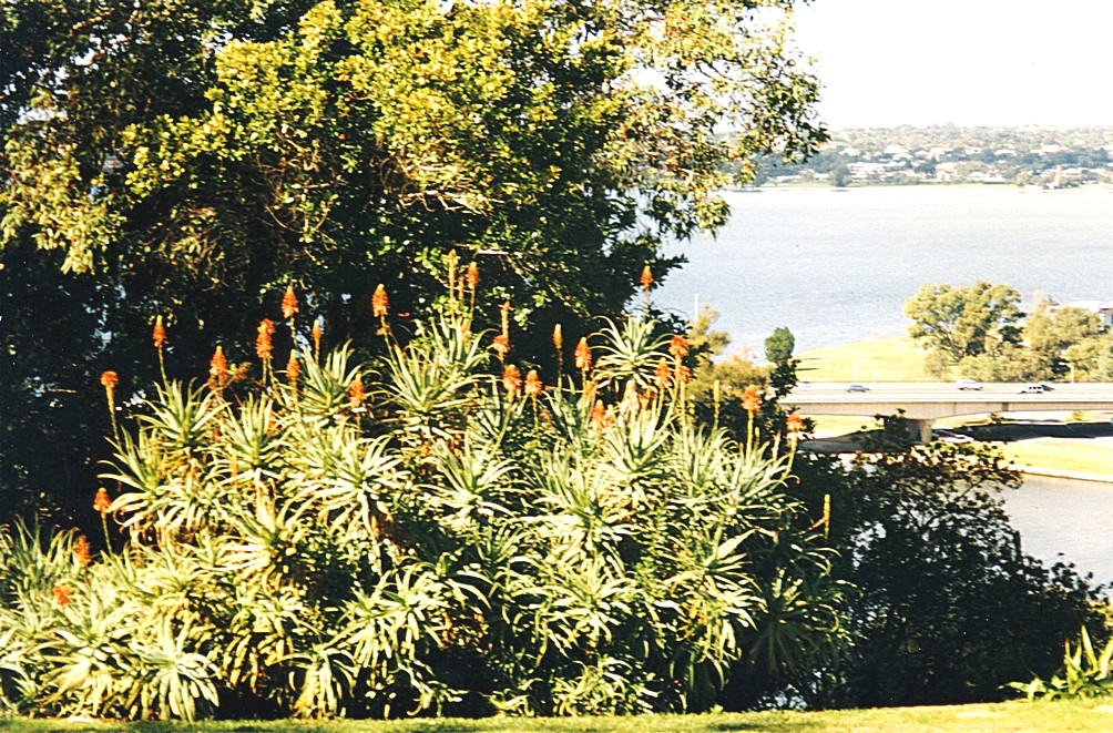 Friday 22nd May 72 km A clear blue sky but quite a chilly start to the day. I'd surprised Adrian by saying I wanted a swim in the pool but the owners decided that it wasn't really going at the time so I had suffice with the shower and hair wash and it was gone 9.30 when we left. We stopped at a Coles a bit further in at Maylands, for the liquorland part and bought two six packs of various bottles of wine which came with excellent value with 20% off each bottle and it was at this stage that we found with put a bottle of wine in the freezer last night and left it there! We continued through Perth looking much prettier in the sunshine today and blue sky to Kings Park and this certainly is a wonderful park. One could liken it to say Phoenix Park in Dublin or Stanley Park in Vancouver. There were a lot of people running around and it is on a large hill overlooking the Swan River right below it, meandering around in different directions, with Perth to one side and South Perth on the other and then right down towards Fremantle. Part of the park is given over to Botanic Gardens, which Adrian reckoned had got into disrepair and they we're being redone - certainly there was a lot of re-doing going on. We did did see some interesting parts, a very interesting display of banksias which we discovered that the majority are in the southwest part of Western Australia and that banksias apart from one type in New Guinea are only native to Australia. There were other nice plants, Strelitzia, Protea, various succulents with great shoots of red flowers all over (kangaroo Paw). Everywhere was very steep with the water below and lots of people out enjoying the sunshine.