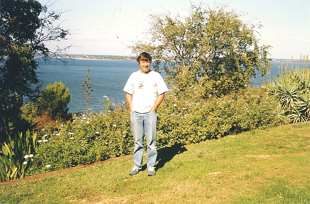 There was a chap nearby who was juggling with with fire, like Tom did and making quite an act out of it. One thing that I should have mentioned was there were buskers galore, including a salvo man, the Salvation Army very strong here with a tape recording playing on a little tape player and there were also as in Adelaide, people shouting out their wares from the shops which we found quite objectionable. We hadn't really got much else we wanted to do, but got one two bits and pieces in shops that we'd been looking out for. The weather wasn't that brilliant and we had thought of going on to Kings Park. We did walk down towards the river and had already walked into the conservatory in a little bit of parkland by the esplanade but just as we got to the river and the weather wasn't very good, we came to a little bus station and the bus waiting there was a free bus for the centre of Perth, so that was just brilliant. We went round the circle as it were, to the last stop before where we got on, which was back at the shopping mall. From here, we walked back to the station and got the train back out to Guilford, where we'd left the van. We'd passed a Coles supermarket on the way in so we drove back a mile or so to that, in one of those precincts that look like any other and went into it. We thought it was rather strange and after we'd been in it for a short time, we realised that we hadn't gone into Coles, in fact, we'd gone into another suermarket called Action, which was just like a cash and carry and not very nice at that. So we didn't end up by buying very much and we couldn't even find a bottle shop, so we returned to the campsite at Caversham. We telephoned Tom and got straight through to him and had quite a chat, but we weren't successful and getting through to either Paul or Simon.