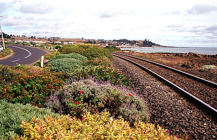 Flowers beside the railway in Penguin