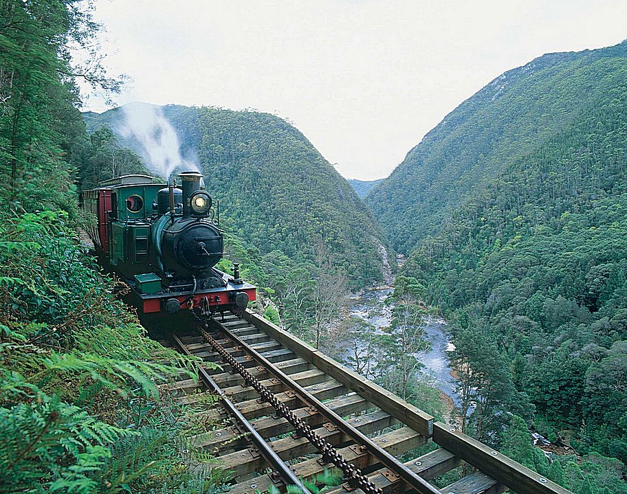 [ When we were there I could never see how this railway could have run again, because of it's remoteness, and lack of people/ volunteers . However the following was taken from the ralway's website :- Following the allocation of Federal Government funding, the Mt Lyell railway from Strahan to Queenstown was totally rebuilt as a major tourist initiative for the Tasmanian West Coast. The bridges were rebuilt, rails relaid and new Abt-rack sections fabricated and installed. The railway was officially reopened over the entire route as the West Coast Wilderness Railway in April 2003.]