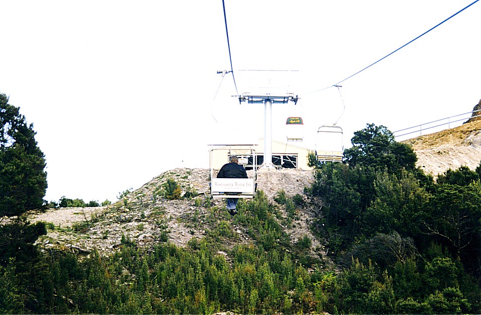 Adrian following the 'guide' up on the chair lift, Queenstown