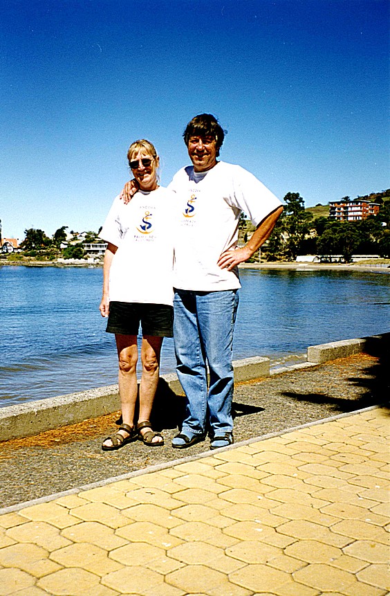 Us in our Ancora T shirts (from Linda at Palm Beach) near Hobart