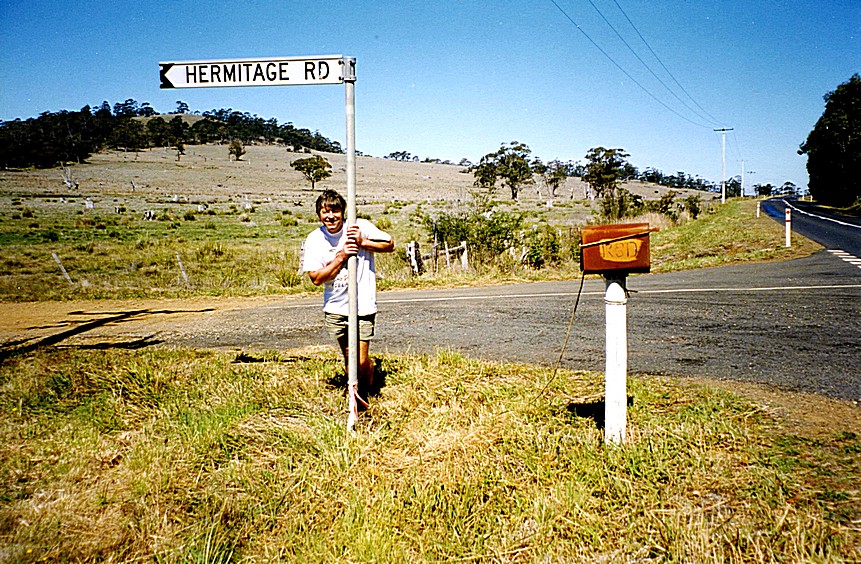 Adrian by another Hermitage Road sign