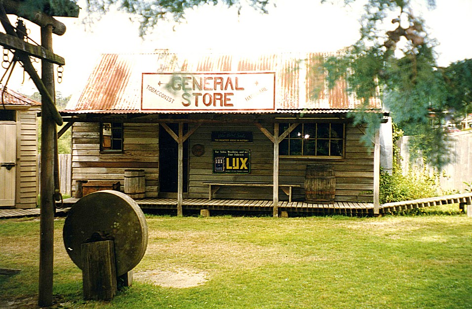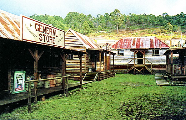 It was a very interesting history of the earth and how it was all joined at one time and how the myrtle trees survived all this. There are similar looking trees in America, South America and Africa, although the seeds don't spread by air or by water, so they dated from when the land was all joined together. It was very pleasant in amongst the huge ferns, and gigantic myrtle trees, still warm although in the shade, and we enjoyed the little walk and it was informative too. We stopped in Derby pronounced Derby and went into a museum here. Derby had a lot of lovely old timbered buildings, but the museum was just something else. It cost $4 each to go in and was a mass of information, buildings with all sorts of old photographs. It was a tin mining area, and there was lots to do with that and also just general things. A dam had broken in 1929 and there had been a flood, causing a loss of life and obviously devastated the place too. Outside, there were half a dozen or more old wooden buildings done up - houses of old, but done very nicely so, with stuff just left around everywhere. There was also a little example of a mine and a great deal of other things to see. We very much enjoyed our visit.