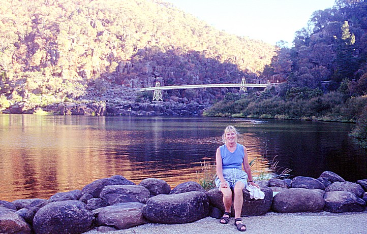 We followed the Tamar River down as far as we could, and then the road into Launceston and then found the way to walk up the Cataract Gorge which adjoins Launceston. This was a very deep gorge of the big River Esk. We followed it for about half an hour and then to our surprise, found quite a few people about and obviously there was access from the other end of it. There was a chairlift and a suspension bridge and we came back by crossing the river and coming back on what was called the zigzag trail, which was just that. It zigzaged up to the top of a mountain side and back down again - we went tremendously high above the river and arrived back at 6.30.