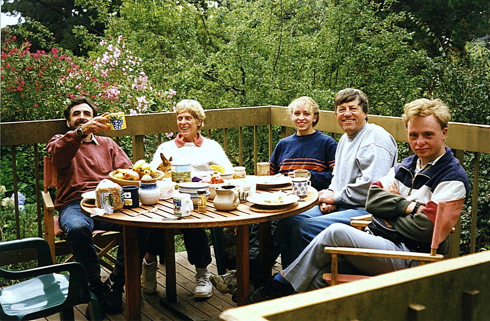 Friday 20th March. Another lovely day, up early to see the sun just rising. We got ourselves packed up, had breakfast, said goodbye to Terry and Cliff and left at 10 o'clock. We drove to Copley, where we stopped for coffee and a bit of Quandong cake in the bakery. Then on to Hawker where we filled with petrol and then on to Quorn where we had lunch in a place similar to the quandong bakery of this morning. We had a meat pie and lemonade. We were looking for a bank and Adrian did get some money out - we'd had to pay quite a bit to Terry for fees and we were right out of money. We then found a phone box and phoned Melbourne and spoke to someone who said the van will be ready for us to collect - great jubilation although we weren't really able to take it in. It was a long journey on through Laura, the landscape becoming greener and greener the further down we went. We'd seen several whirly tornadoes on our journey on the way back. We arrived back in Bridgewater, Adelaide about 7.00 and were greeted by Tim, Mark and the dog, Laura and Adam returned just afterwards. We had pizza, which the kids had made and we unloaded the stuff into a room which had bunk beds in. We felt pretty tired. We had a letter from Emma and one from Margaret Massialas [family friend].