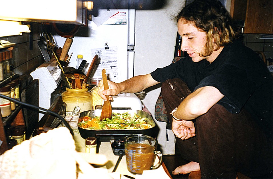 Adam cooking a stir-fry for supper