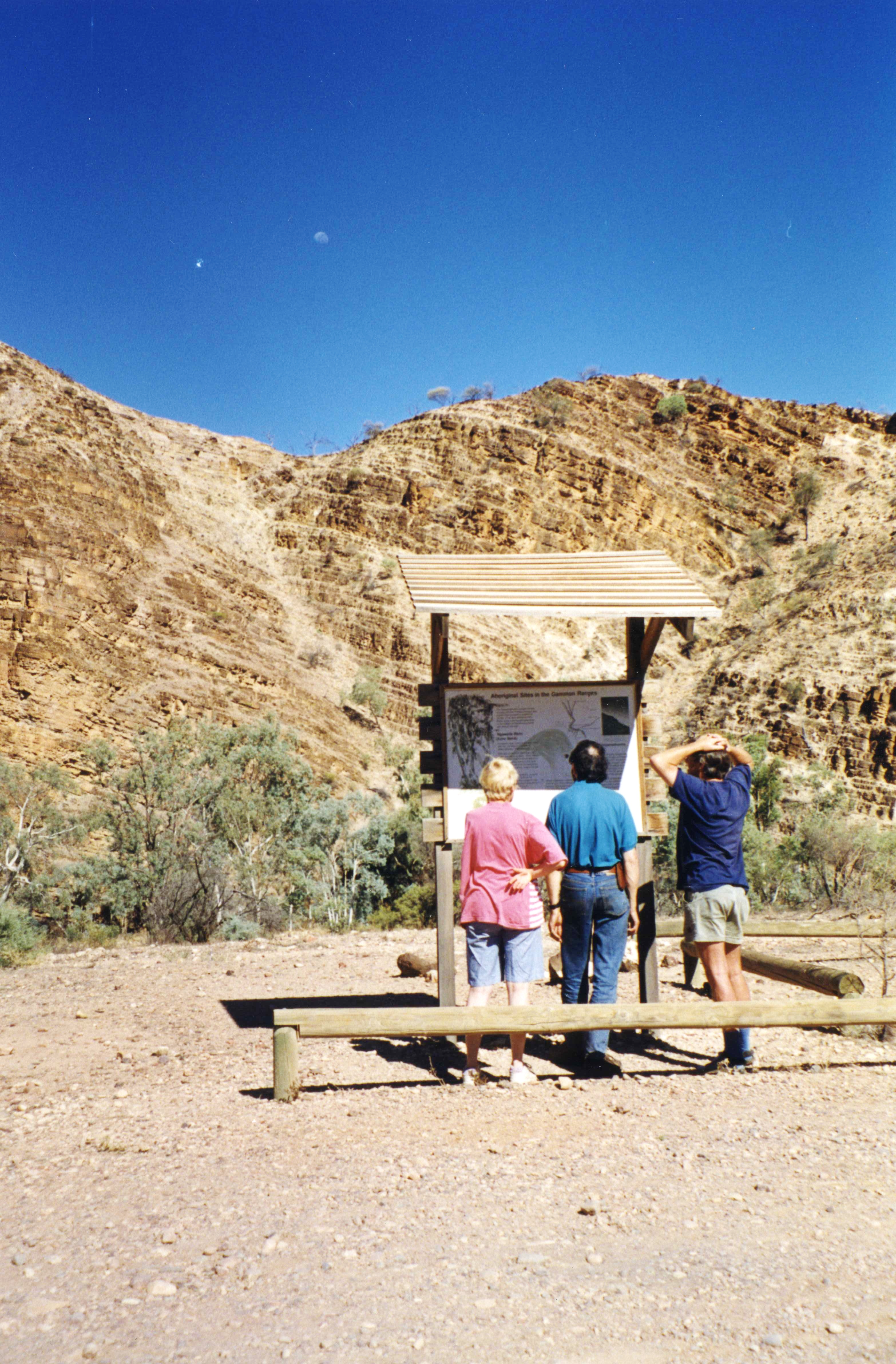 Jan, Rob & Adrian looking at an information board near Arkoroola