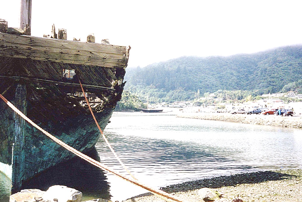 We awoke to find heavy mist hanging, which was slow to clear, so it felt quite chilly. When it did, it was a sunny day which got quite hot in the afternoon. We drove into Picton to shop – we found the 4 Square shop even less inspiring than most. Adrian went to the bank for more money. We phoned Kaikoura and booked a "whale watch" for Tuesday. We looked at two old ships – the Echo built in 1905, and the Edwin Fox, in a great state of disrepair, was in use last century as a whaling ship and to take convicts to Australia.