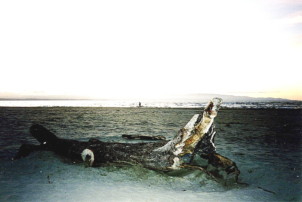 Afterwards we had a quick walk on the beach which was littered with interesting shaped pieces small driftwood – possibly from the roots of Norfolk Pines which fringed the beach. We set off southwards, initially along the coast, then the road went inland. At Cheviot we took a small road off which went to the beach at Gore Bay. There was a small (empty) campsite here and we should have stayed, as apart from another site nearby which seemed to contain all static vans or storage vans, we didn't pass anything else. The road we were on was mostly unsurfaced, with virtually no traffic and wound its way around for about 25 miles. We eventually came to Motunau beach, which we thought would have a site, but it was just a cluster of little houses and a not particularly pretty beach. We continued the 15 km back to the state highway. I had been feeling decidedly dozy – the effect of the tablets. The light was fading fast but we hurried towards Christchurch, finally finding a site at Leathfield at 6.30, just as it was getting dark.
