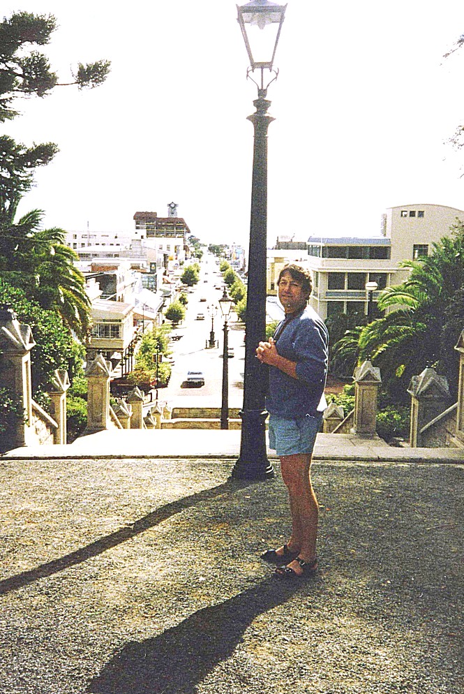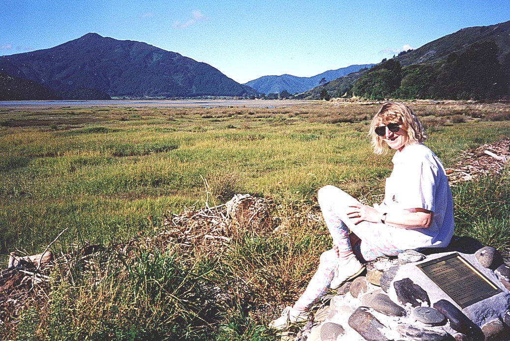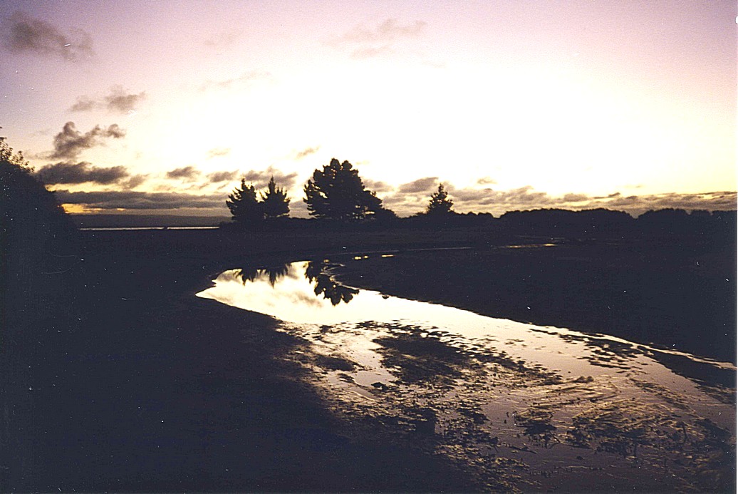 We continued on our way, stopping to look at a site at Pelorus Bridge, but it was empty and remote, in the middle of forest, and we decided to press on to Nelson. We didn't realise that this would mean scaling two mountain passes, on continually winding roads through densely wooded slopes. On arrival at Nelson we located the site – we should have been more wary of "adjacent to beach", as this definitely means "not on the beach". The huge beautiful sandy beach is in fact "adjacent". We got to it by walking through the road past the pleasure complex. The sun had just disappeared. There was a wonderful beauty here on this fine sandy beach with distant headlands in pinks and mauves. It was a little like Denmark. The temperature was too, as it had dropped dramatically with the setting of the sun.