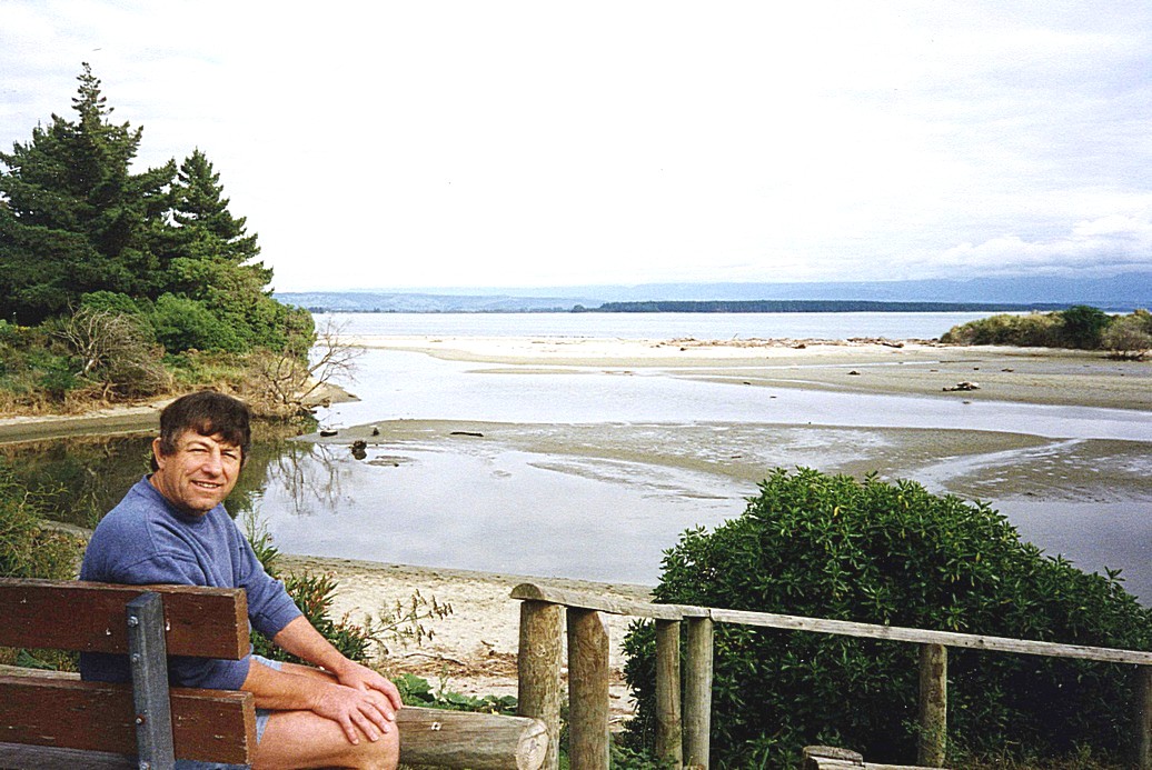We got involved in a cycle race – going in the opposite direction, and with not many cyclists. We drove into Westport, hoping to find a shop and after much searching we found a "New World", but it was even less inspired than the last place! This area is renowned for coal, but the only evidence we saw was in trucks of coal on a passing train. We drove to an area nearby, on the coast and stopped for lunch parked right by the sea at Carters Bay. The beach was of fine sand, but tinged with black (more evidence of the coal!). The waves rushed in and there was a lot of driftwood – very attractive. We had a short walk on the beach after lunch and met an English couple also touring New Zealand, but having spent seven weeks in Australia with relatives and now touring by car.