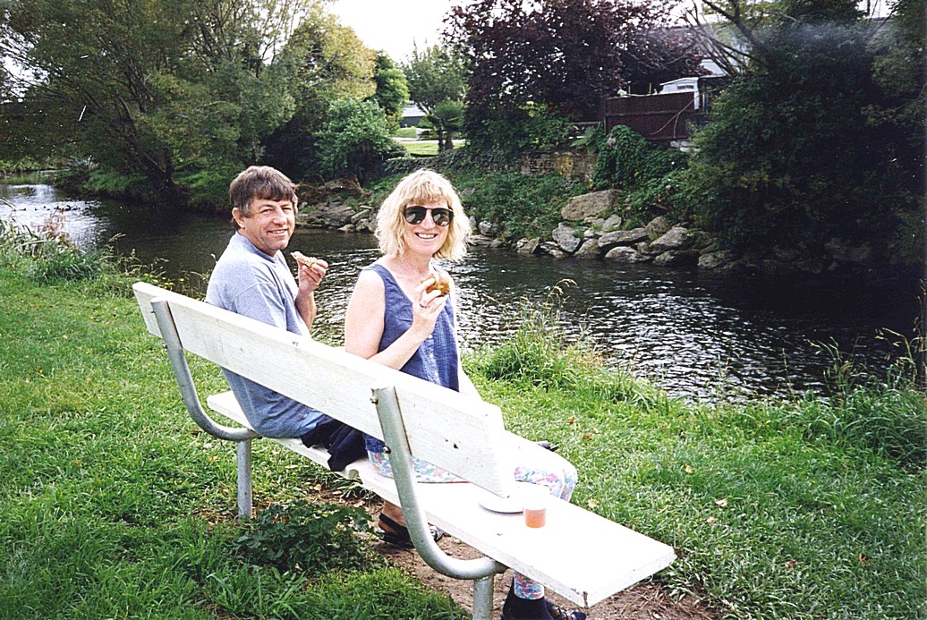We sat briefly on a seat above the steps, enjoying the warm sunshine – Nelson is said to have the sunshine record for New Zealand – then drove off and parked by a little river on the other side of Nelson, opposite the swimming pool, built in 1925 – we sat on a seat here and enjoyed hot cross buns bought yesterday at Picton. All hot cross buns here seem to be brown (as opposed to white), but these tasted very good.