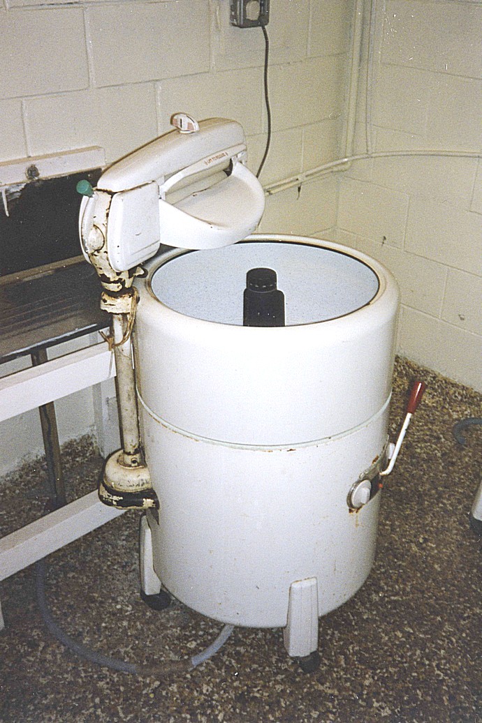 We came back to the van in its delightful forest setting. Any thoughts of doing the washing were quashed when we saw the archaic "mechanised washing dolly" in the "laundry"!