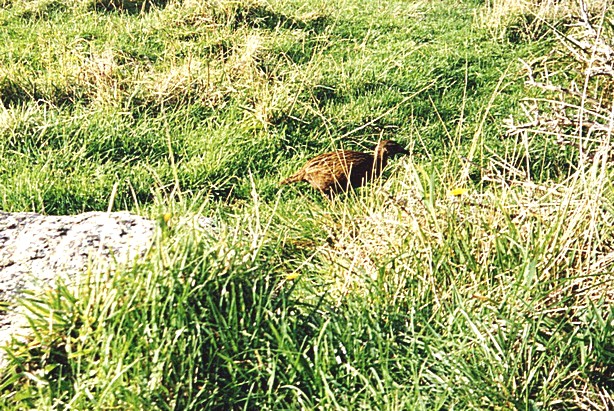 There was a signpost nearby, with amongst other places, London 16,286 km. The coast here is wonderful and we had a very happy walk, revelling in the warm sunshine. On our return we saw a small bird with a nuthatch type head, fat body and wagtail movement of the tail, yellowish grey and seemingly unafraid. We stopped by the Able Tasman astrolobe – a copy of the sextant he used in 1642 when he charted this coast. At this point we saw another bird – a large quail type bird, brown and again very unconcerned – a Kiwi without the beak.