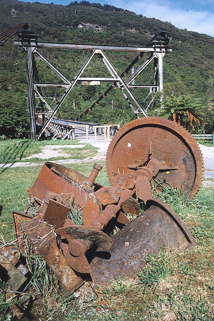 We then headed for Greymouth, the mouth of the Grey River, which we now followed. Shortly upstream we came to the site of an old coal mine, the Brunner mine, named after Thomas Brunner. We stopped here to have a look around and immerse ourselves in a bit of industrial history.