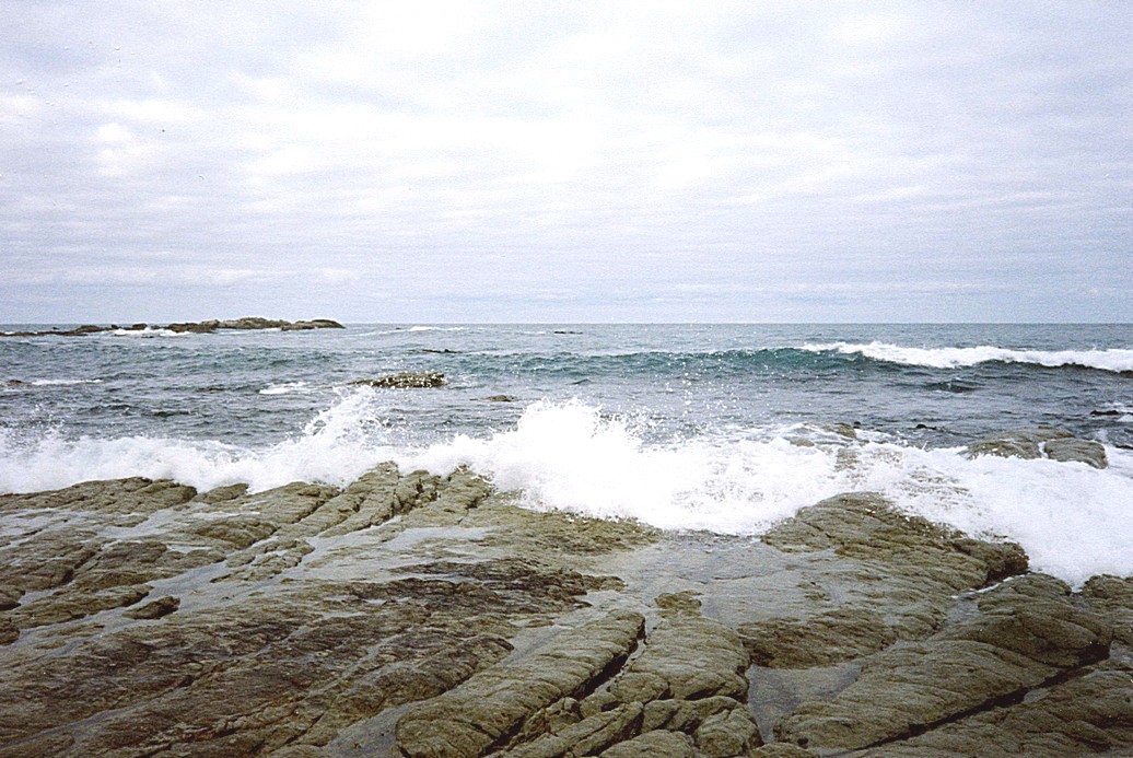 A cloudy start, but alternating with sun during the day. There was a phone box just near where we were parked and I started the day by trying to phone Thomas. Many tries later I made it – after buying a new phone card (ours hadn't enough left on it), and several tries when it was engaged, I finally got through to him and had a short chat for my five dollars and found that he had a good time in Wales. We were also near the kitchen block, so had the luxury of toast for breakfast, using the rest of our nice white loaf. We called briefly at the well stocked Supermarket – being Good Friday most shops were shut. We then drove down to a pleasant bit of beach adjacent to the other side of the campsite – called Parkers Beach. The tide was in now and it was very pleasant (and warm!) and with character.