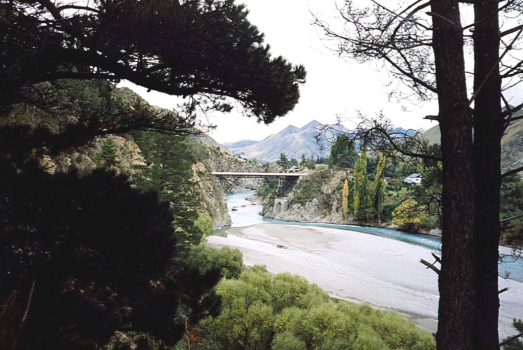 The walk was lovely, but as is often the case there were virtually no signs and many tracks, which made it difficult to know where one was going! It was a bit like a New Forest area, with attractive play and picnic areas and lots of streams. As we left, families were arriving to enjoy themselves. Easter is obviously "bigger" in New Zealand than we found it in Australia. We had to backtrack the few miles from Hamner to the main road. Hamner is a bit like Las Vegas, a hive of activity in the centre of a wilderness. We approached again the Waiau Ferry Bridge (photoed previously on the way up to Hanmer Srings). We stopped to video it and were slightly annoyed that a car hurriedly pulled in beside us. They had just crossed the bridge and saw that someone was about to bungee jump! We missed the jump off, but were able to get plenty of video of the man hanging – specially for Thomas!