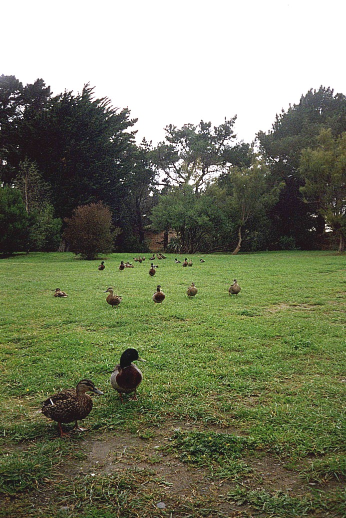 Outside we caught the "city loop" tram – a tourist attraction, where for $3 (just over £1) each, you could ride as much as you like for one hour (we only had one hour anyway). As we went to get on, a tram driver spoke to a gentleman behind us, and it turned out that he was the man responsible for preserving the trams. Our tram driver was very chatty and had all the time in the world to chat. After about 10 minutes we arrived at the edge of the Botanic Gardens which I wanted to visit but thought we hadn't time. We had a quick 15 minutes walk in them, passing lots of wonderful old trees of all sorts – just like a lovely English park, with a little river running through and all the autumn colours. Christchurch seems more English than England – very like Cambridge say.