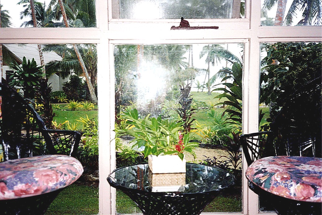 Friday 21st April What can I say about Fiji? It's wonderful. Today's weather wasn't fantastic, but was so warm and the rain didn't matter. I awoke early and drew back the curtains on the front and the side of our chalet. The view was what one imagines of paradise – palm trees, luscious plants and then the sea.