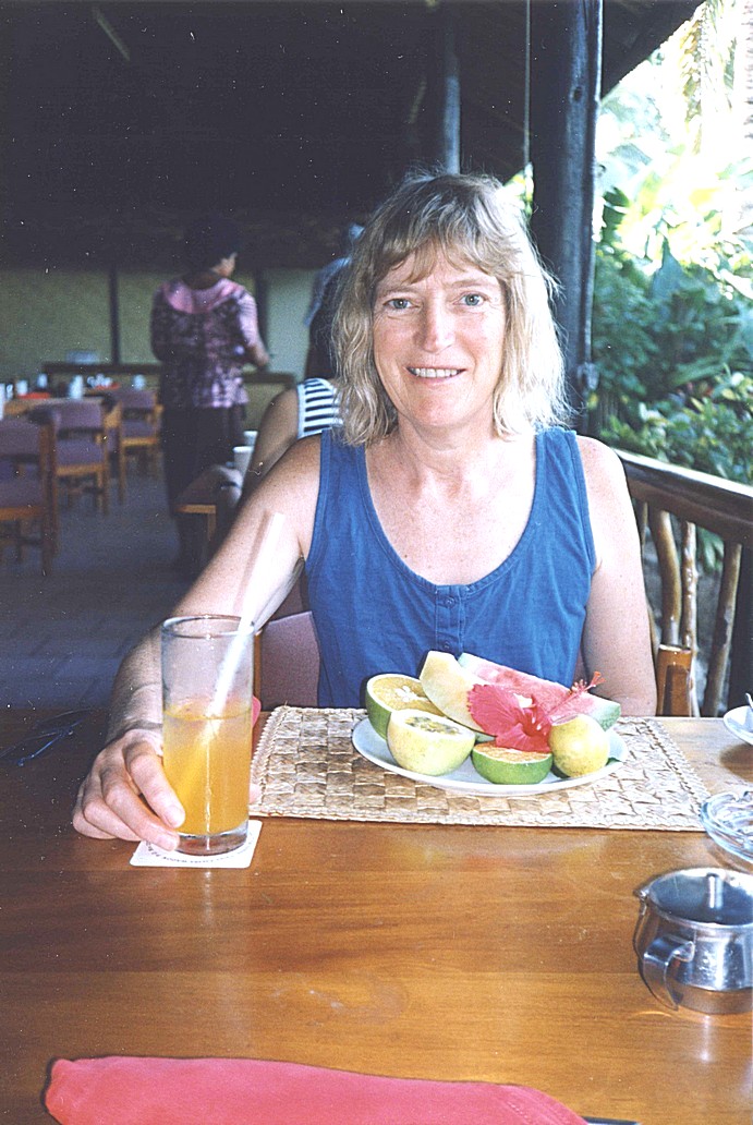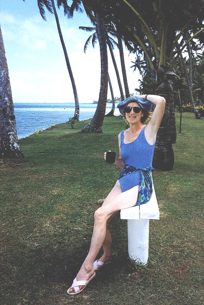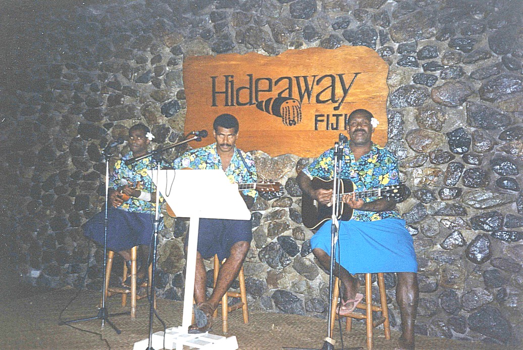 We were so lucky to have this opportunity – apparently it is only the 3rd time they have done it – and it was just the one day we were here. We all trooped back to "Hideaway" – on the way back along the road we met and elderly Fijian gentleman who stopped to speak – again such a genuine man. He explained about the flower garlands and how much it means to give one to someone. He spoke with such love and sincerity – these people really are something special and we in the Western world should learn from them. As a race they are quietly spoken and laid back gentle and loving. And they smile and welcome everyone. By now we had met up with the other English people – a couple Mike and Dawn – late 30s (?) and their 3 children, Nicky (13), Russell (12) and Stephen (8). They have spent 5 months in Adelaide, where his sister lives. The children went to school there. They were making a "round the world" trip, by now taking a about 6 weeks travelling home. She was more outgoing than he, but all very pleasant. We found that their chalet was two along from us and spent a couple of hours chatting to them and drinking their beer and tea.
