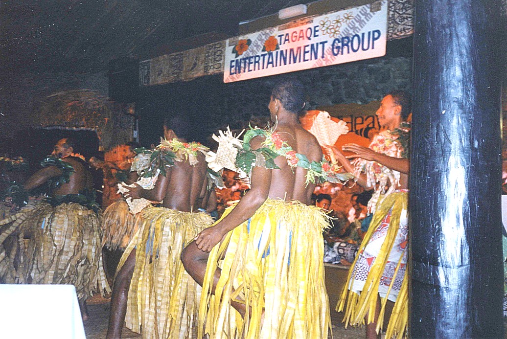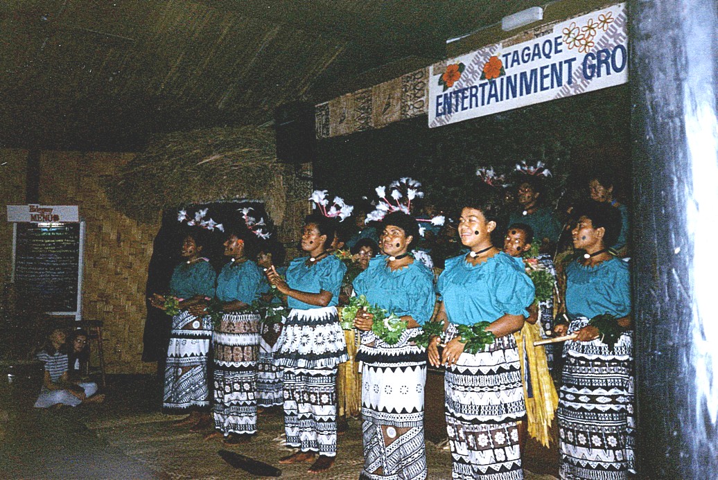 Fijian ladies singing and men dancing