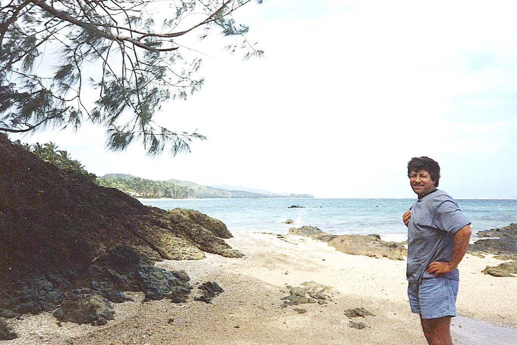 Adrian looking back to the Hideaway Hotel from along the beach