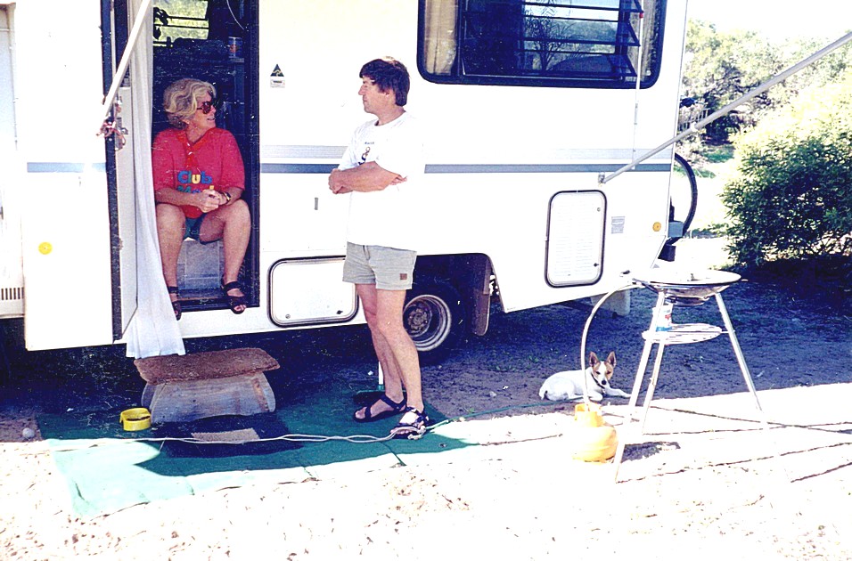 During the afternoon, Adrian managed to mend the bits of our lift up roof which had broken. I did one or two cleaning things and time seemed to go. We did have a cup of tea with Ann and Dennis who'd arrived again. Jenny had arranged that we went out this evening with them to a little get together, so we had showers and got ready to go there. We had a really pleasant evening, there were about 20 people there in total, who we had a good evening chatting too. There was a meal, with the people, who brought something to add to it [pot luck] and drink. We chatted to a couple called George and Margaret who are the ones who are our sort of age and had a three year old son - she had a baby at 50. There were several other people who added to our stories and of where to go and they were all tickled pink about the story of 'what state was your lettuce in'.