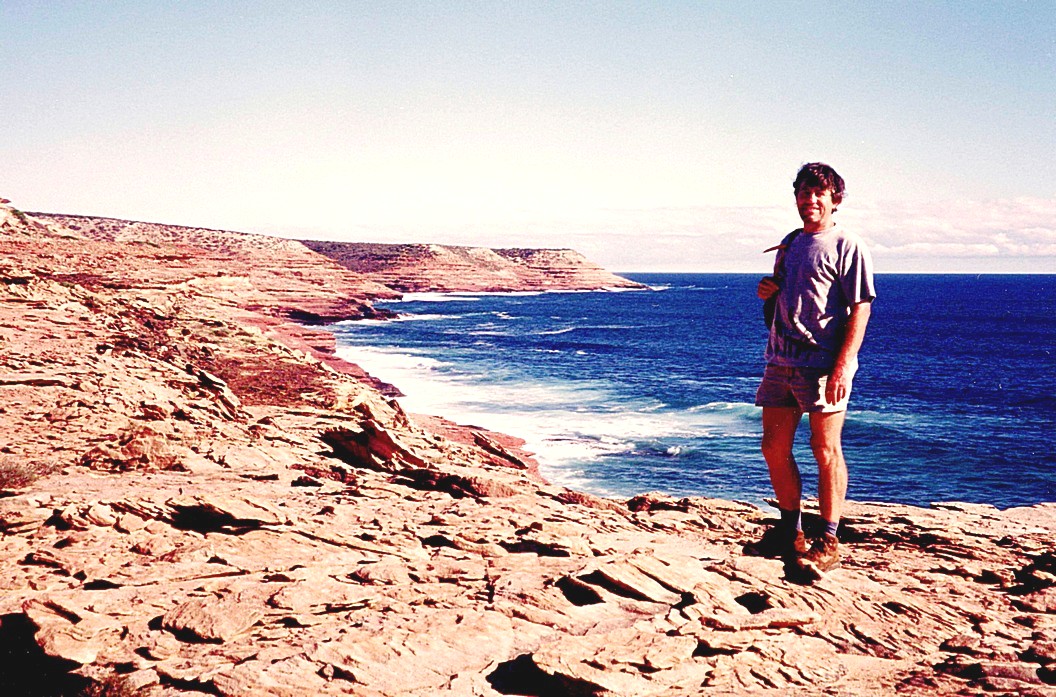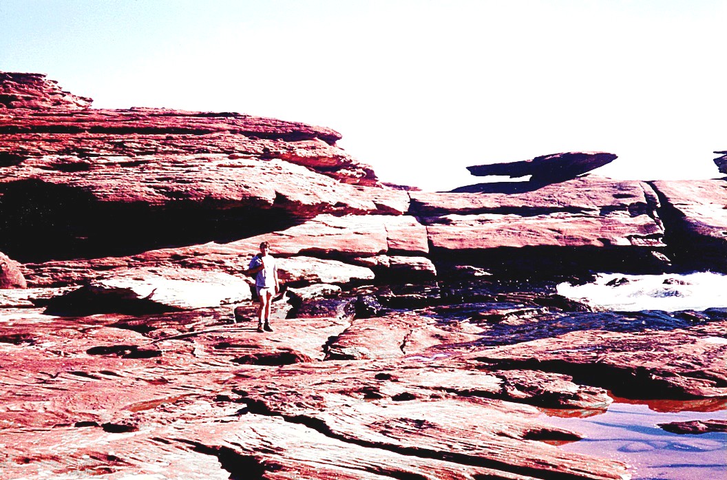 Rosie on the walk and Adrian by Mushroom rock, Kalbarri